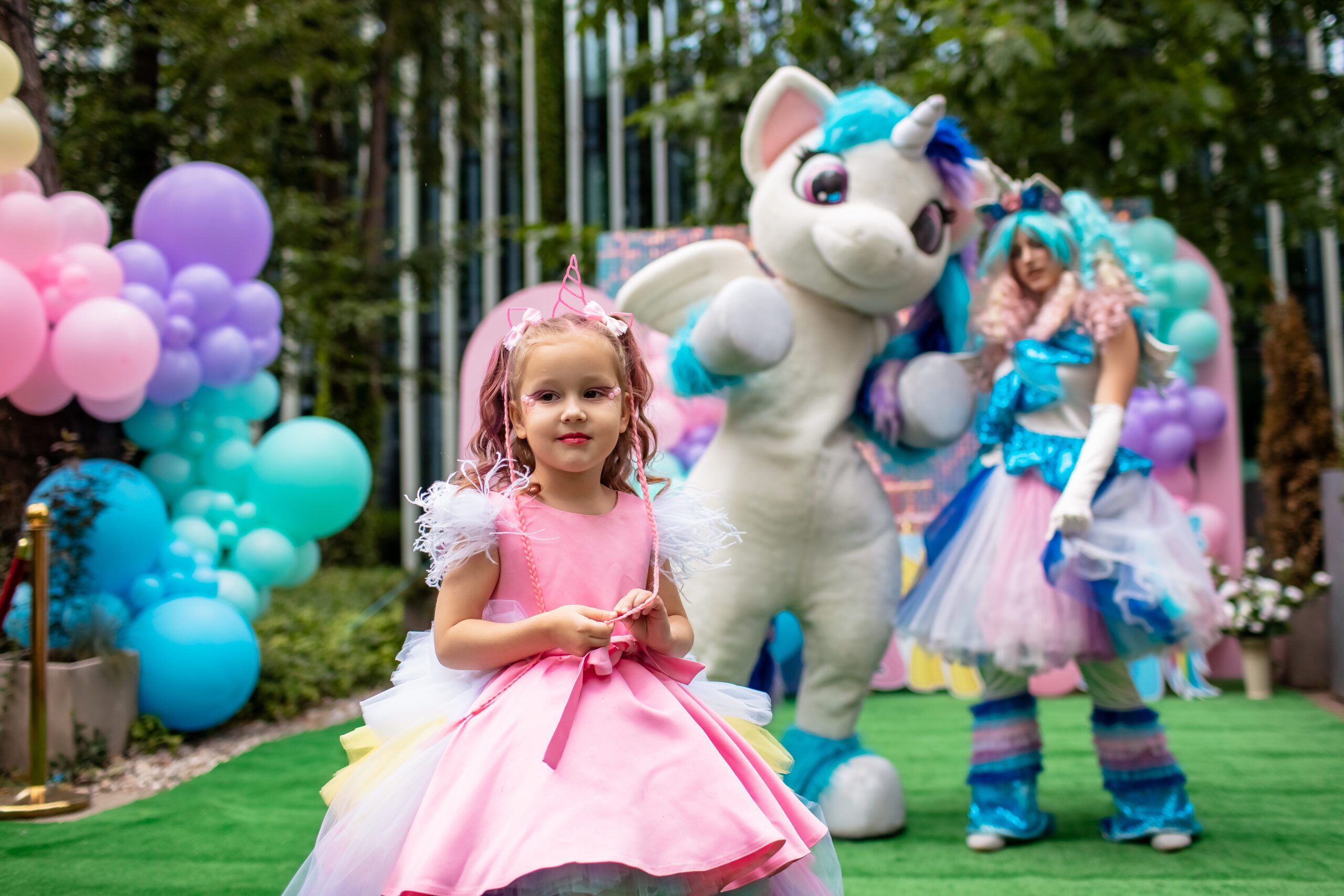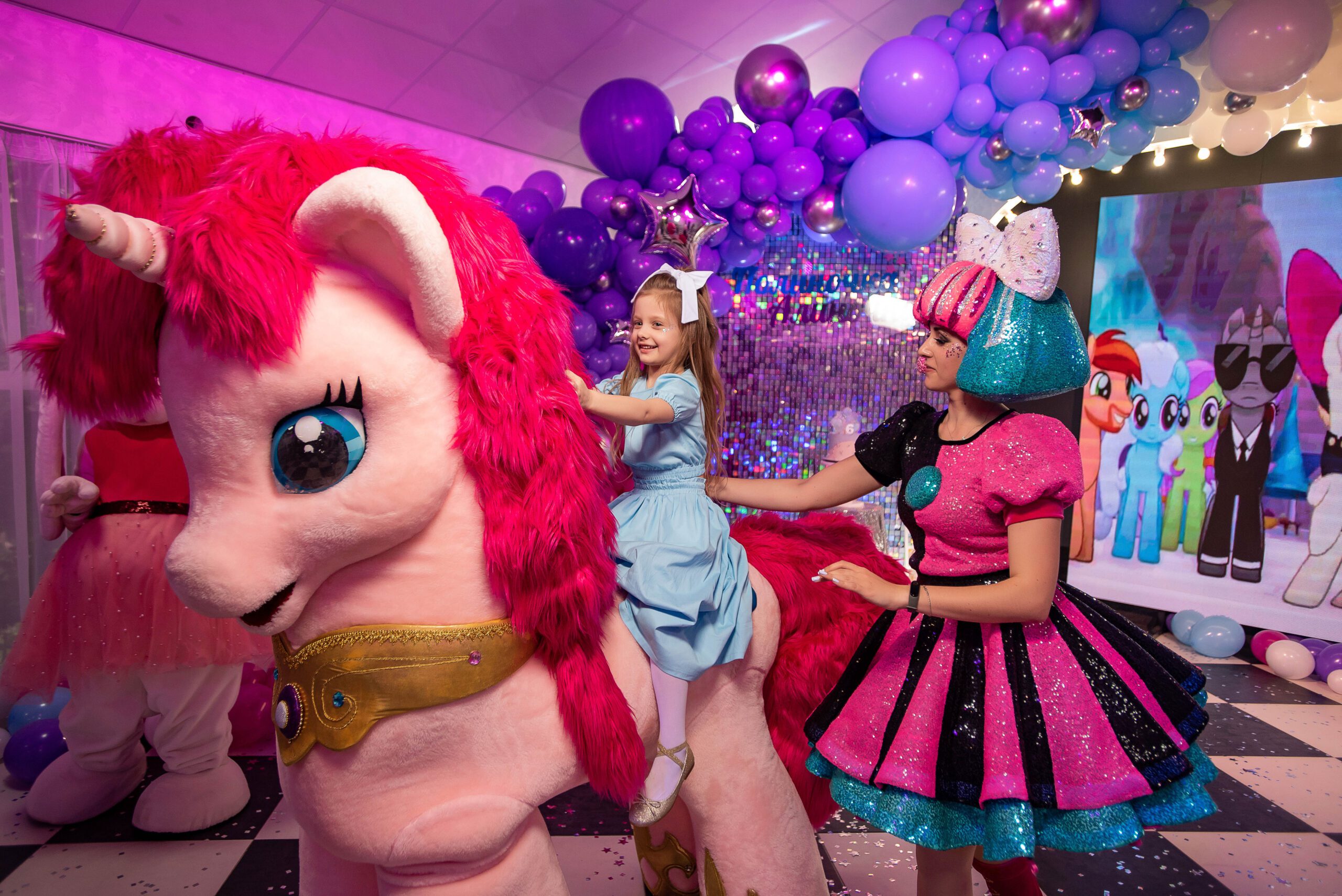 Program otwiera dynamiczna scena z wejściem kolorowych kucyków, które od razu porywają dzieci do wspólnej zabawy. Krótkie wyzwania ruchowe przeplatają się z chwilami twórczego oddechu — maluchy dekorują akcesoria, śpiewają ulubione piosenki, a na finał czeka mini‑dyskoteka pełna konfetti i bąbelków. W kulminacyjnym momencie gaśnie światło: wjeżdża tort, a my ustawiamy maluchy tak, by każde znalazło się w kadrze. To ta sekunda, którą pokochasz oglądać w rodzinnym albumie!