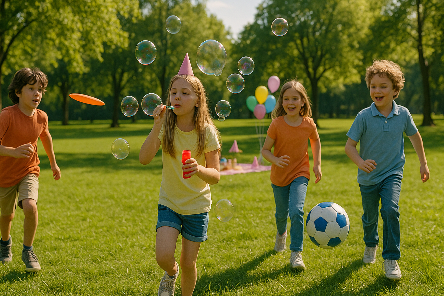 Gry i aktywności. Przyroda sama zachęca do ruchu. Weź ze sobą piłkę do nogi, zestaw do badmintona, frisbee, skakanki. Można zorganizować wyścigi, konkursy sportowe albo nawet mini-quest w poszukiwaniu „skarbu” (wcześniej ukrytych słodyczy). Dzieci uwielbiają też bańki mydlane – na dworze można je puszczać do woli, nie martwiąc się o rozlanie płynu. Jeśli w pobliżu jest bezpieczny akwen, zabierz pistolety na wodę – latem bitwa na wodę stanie się gwoździem programu!