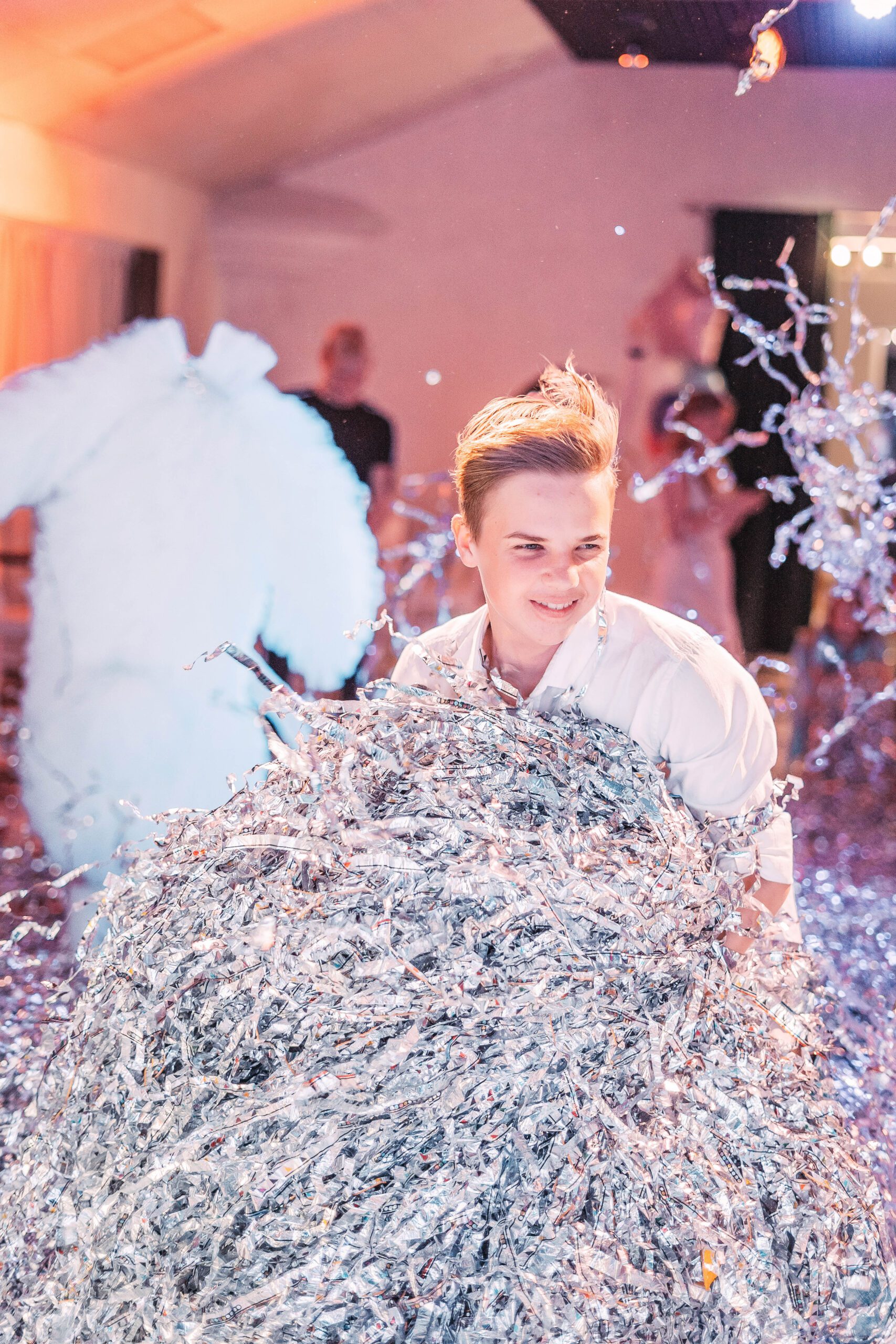 To pół godziny pełne ruchu i radości. Dzieci tańczą, rzucają papierem, bawią się w wirujących strumieniach i przeżywają prawdziwe papierowe szaleństwo w akompaniamencie ulubionej muzyki.